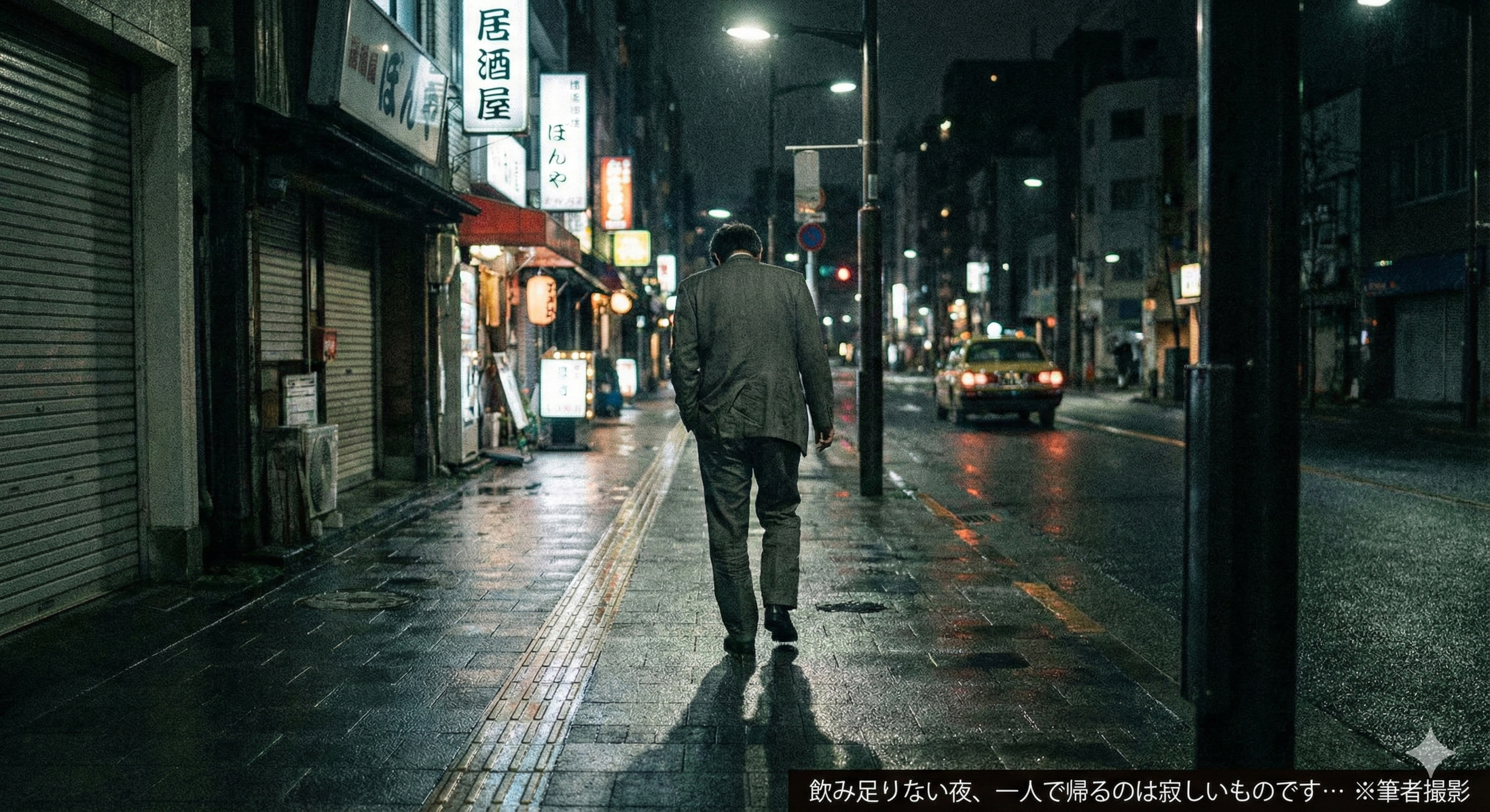 (キャプション:飲み足りない夜、一人で帰るのは寂しいものです… ※筆者撮影)