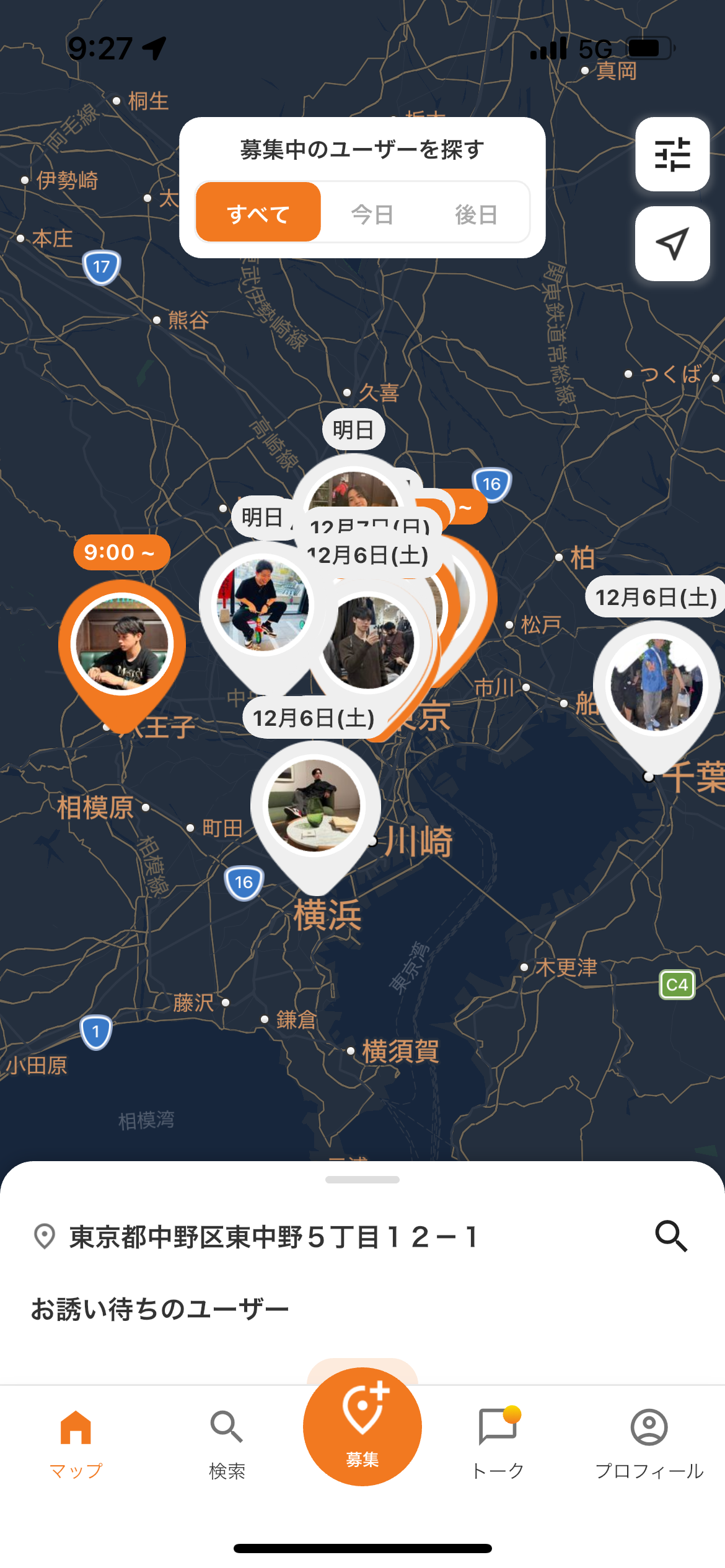 そんな時、地図を見れば「今すぐ参加できる人」が一発で分かります。 遠くにいる人に声をかける必要はありません。**半径500m以内の「ご近所さん」**とマッチングできるのです。